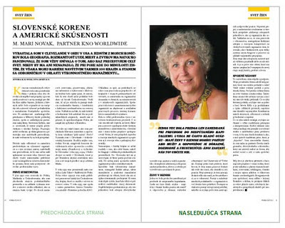 Senior KNO partner M. Mari Novak is highlighted in FIRMA, a glossy and web published magazine, with a focus on Slovak women entrepreneurs. Mari celebrates in 2011 over 2 decades of promotion of commercial reform and performance in Central Europe. Link to the story here.