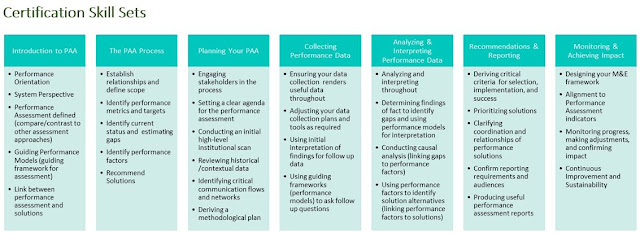 For decades KNO/IFNAE have been at the forefront of implementing rigorous and effective performance improvement methodologies in capacity building programs for a variety of donor-funded international development initiatives worldwide. A paramount element of their success has been the initial performance assessment conducted to diagnose institutional needs, determine root causes and define recommended solutions. After replicating their success with a variety of stakeholders across many countries and continents to conduct these assessments, KNO/IFNAE have refined their approach, methods, and tools to form the foundation for a rigorous certification program.